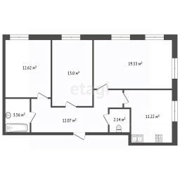 74 м², 3-комн., 6/12 этаж