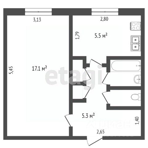 5,8 кв.м. кухня;