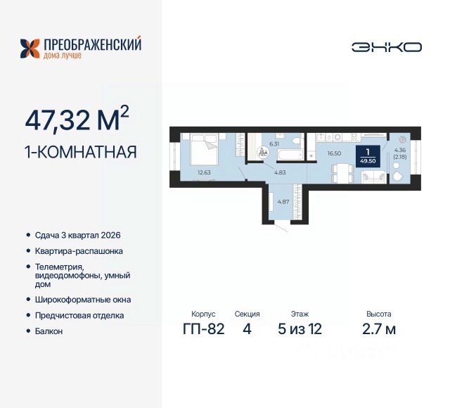 1-комн. квартира от застройщика с предчистовой отделкой в ЖК "Преображенский" на 5 этаже. Общая площадь: 38.73 кв.м., жилая: 11.34 кв.м., площадь просторной кухни-столовой: 14.6 кв.м. Все окна выходят на одну сторону. В квартире одна лоджия, один совмещенный санузел. Высота потолков 2.7 м. Дом монолитный, многоподъездный, переменной этажности, от 8 до 12 этажей. Квартира находится в 4-й секции высотой 12 этажей в корпусе ГП-82. На этаже 6 квартир. В подъезде 1 пассажирский и 1 грузовой лифт. Окончание строительства - 3 квартал 2026 года. Оформление сделки по договору долевого участия. Квартал будет расположен в микрорайоне Славянский на пересечении улиц Мира и 70-летия Октября. Престижный район, собственный парк, вся необходимая для жизни, учёбы и работы инфраструктура — новая школа с бассейном и кванториумом, новый детский сад, поликлиника, спорткомплекс, магазины и др. Чтобы в квартирах было как можно больше свободного пространства, мы предусмотрели индивидуальные кладовые на цокольном этаже. Оставляйте коляски и сезонный спортинвентарь после прогулок здесь — удобно для вас и чисто для квартиры. В подземный паркинг можно спуститься на лифте прямо с квартирной площадки. #ZSETai Продается 1-комнатная квартира на 5 этаже в Ямало-Ненецком АО.
