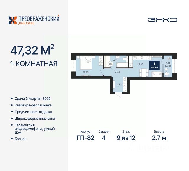 Квартира подготовлена к ремонту (черновая отделка), во всех комнатах (кухня, основная комната) установлены пластиковые окна с тройным стеклопакетом.