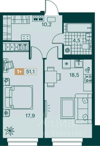 Общая площадь квартиры 31,2 кв.м, из них: