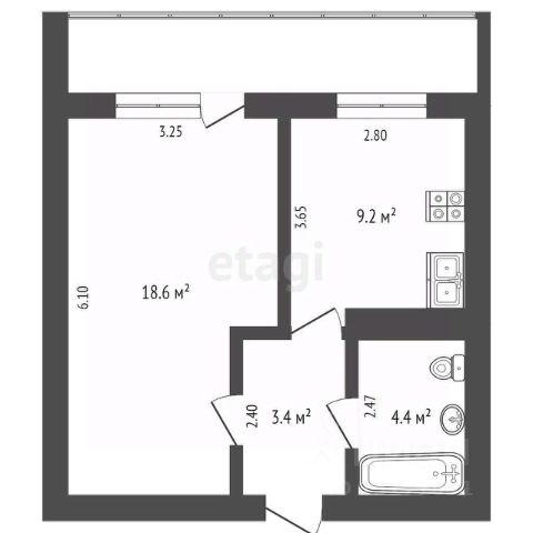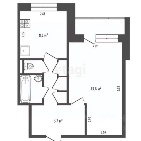 5,8 кв.м. кухня;