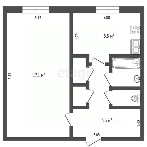 5,8 кв.м. кухня;