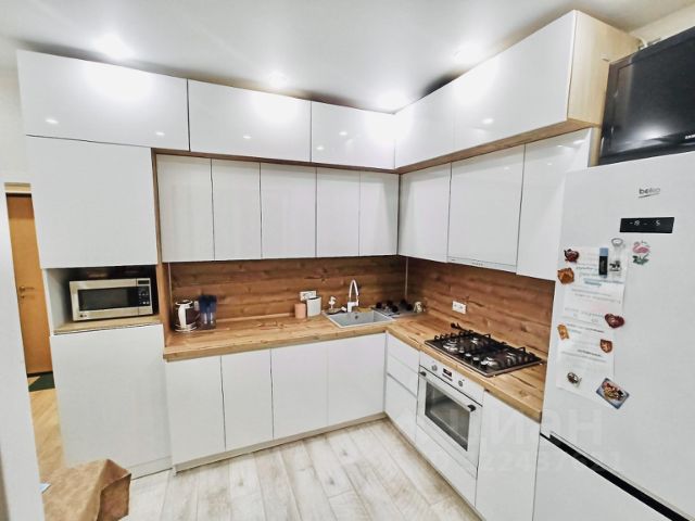 В квартире остается кухонный гарнитур со встраиваемой техникой и холодильником. Встраиваемый шкафы в прихожей, гардеробная система в гардеробе, большой диван в гостиной.