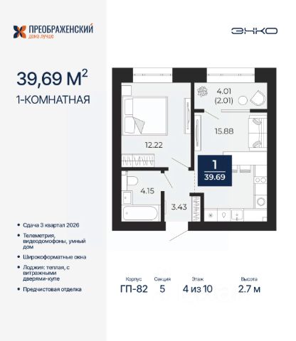 Продается 1-комн. квартира с предчистовой отделкой в ЖК "Преображенский" на 2 этаже. Общая площадь: 45.72 кв.м., жилая: 11.72 кв.м., площадь просторной кухни-столовой: 15.17 кв.м. Квартира - распашонка, без проходных комнат, окна выходят на paзные стороны дома. В квартире одна лоджия, один совмещенный санузел. Высота потолков 2.7 м. Дом монолитный, многоподъездный, переменной этажности, от 8 до 12 этажей. Квартира находится в 4-й секции высотой 12 этажей в корпусе ГП-82. На этаже 6 квартир. В подъезде 1 пассажирский и 1 грузовой лифт. Окончание строительства - 3 квартал 2026 года. Оформление сделки по договору долевого участия. Квартал будет расположен в микрорайоне Славянский на пересечении улиц Мира и 70-летия Октября. Престижный район, собственный парк, вся необходимая для жизни, учёбы и работы инфраструктура — новая школа с бассейном и кванториумом, новый детский сад, поликлиника, спорткомплекс, магазины и др. Чтобы в квартирах было как можно больше свободного пространства, мы предусмотрели индивидуальные кладовые на цокольном этаже. Оставляйте коляски и сезонный спортинвентарь после прогулок здесь — удобно для вас и чисто для квартиры. В подземный паркинг можно спуститься на лифте прямо с квартирной площадки. #zwFzdD Продам 1-комнатную квартиру в жилом комплексе с кухней гостиной в Ямало-Ненецком АО.
