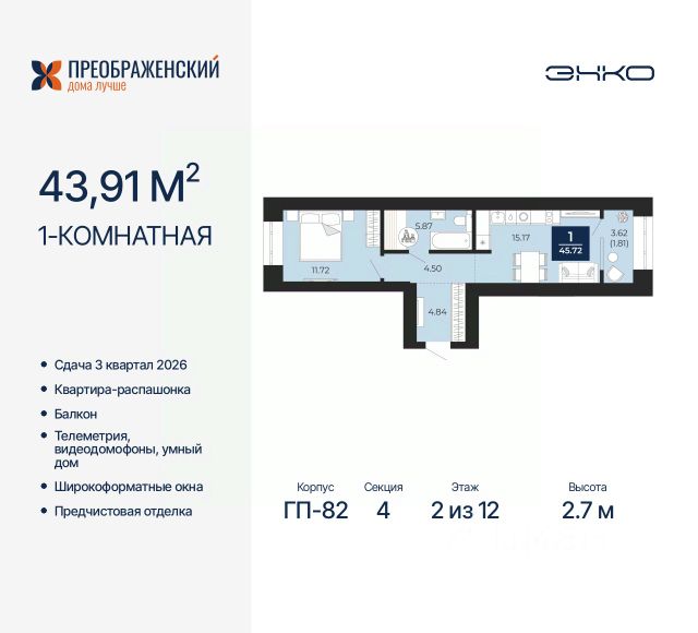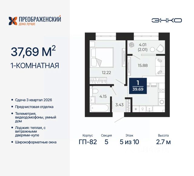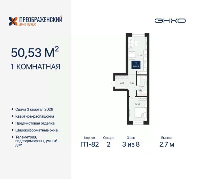 Продается 1-комн. квартира от застройщика с предчистовой отделкой в ЖК "Преображенский" на 3 этаже. Общая площадь: 39.25 кв.м., жилая: 11.44 кв.м., площадь просторной кухни-столовой: 17.73 кв.м. Все окна выходят на одну сторону. В квартире одна лоджия, один совмещенный санузел. Высота потолков 2.7 м. Дом монолитный, многоподъездный, переменной этажности, от 8 до 12 этажей. Квартира находится в 3-й секции высотой 10 этажей в корпусе ГП-82. На этаже 4 квартиры. В подъезде 1 пассажирский и 1 грузовой лифт. Окончание строительства - 3 квартал 2026 года. Оформление сделки по договору долевого участия. Квартал будет расположен в микрорайоне Славянский на пересечении улиц Мира и 70-летия Октября. Престижный район, собственный парк, вся необходимая для жизни, учёбы и работы инфраструктура — новая школа с бассейном и кванториумом, новый детский сад, поликлиника, спорткомплекс, магазины и др. Чтобы в квартирах было как можно больше свободного пространства, мы предусмотрели индивидуальные кладовые на цокольном этаже. Оставляйте коляски и сезонный спортинвентарь после прогулок здесь — удобно для вас и чисто для квартиры. В подземный паркинг можно спуститься на лифте прямо с квартирной площадки. #2se79s Продам 1-комнатную квартиру с отделкой от застройщика в Ямало-Ненецком АО.