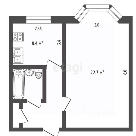 • ✅ Минимальная площадь: 33,8 м²