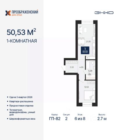 1-комн. квартира с предчистовой отделкой в ЖК "Преображенский" на 2 этаже. Общая площадь: 39.31 кв.м., жилая: 11.14 кв.м., площадь просторной кухни-столовой: 14.12 кв.м. Все окна выходят на одну сторону. В квартире одна лоджия, один совмещенный санузел. Высота потолков 2.7 м. Дом монолитный, многоподъездный, переменной этажности, от 8 до 12 этажей. Квартира находится в 4-й секции высотой 12 этажей в корпусе ГП-82. На этаже 6 квартир. В подъезде 1 пассажирский и 1 грузовой лифт. Окончание строительства - 3 квартал 2026 года. Оформление сделки по договору долевого участия. Квартал будет расположен в микрорайоне Славянский на пересечении улиц Мира и 70-летия Октября. Престижный район, собственный парк, вся необходимая для жизни, учёбы и работы инфраструктура — новая школа с бассейном и кванториумом, новый детский сад, поликлиника, спорткомплекс, магазины и др. Чтобы в квартирах было как можно больше свободного пространства, мы предусмотрели индивидуальные кладовые на цокольном этаже. Оставляйте коляски и сезонный спортинвентарь после прогулок здесь — удобно для вас и чисто для квартиры. В подземный паркинг можно спуститься на лифте прямо с квартирной площадки. #zwfZD9