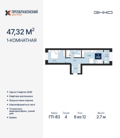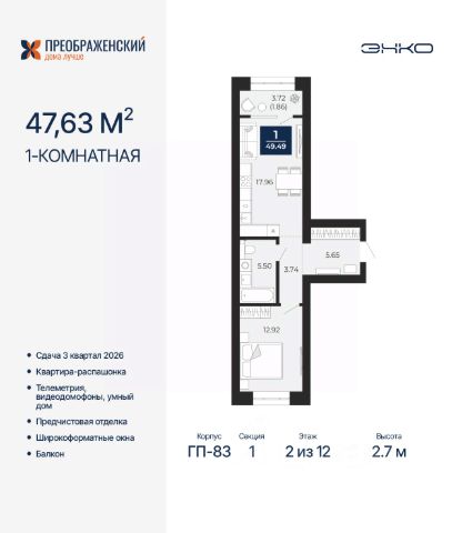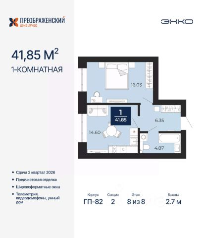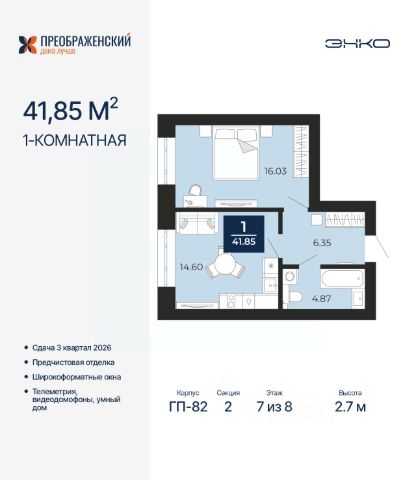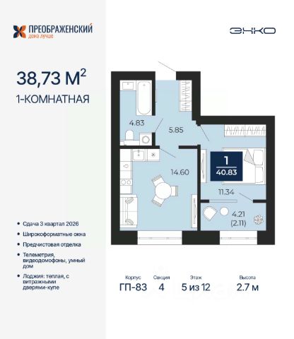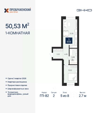 Продается 1-комн. квартира от застройщика с предчистовой отделкой в ЖК "Преображенский" на 2 этаже. Общая площадь: 37.41 кв.м., жилая: 11.14 кв.м., площадь просторной кухни-столовой: 14.12 кв.м. Все окна выходят на одну сторону. В квартире одна лоджия, один совмещенный санузел. Высота потолков 2.7 м. Дом монолитный, многоподъездный, переменной этажности, от 8 до 12 этажей. Квартира находится в 4-й секции высотой 12 этажей в корпусе ГП-82. На этаже 6 квартир. В подъезде 1 пассажирский и 1 грузовой лифт. Окончание строительства - 3 квартал 2026 года. Оформление сделки по договору долевого участия. Квартал будет расположен в микрорайоне Славянский на пересечении улиц Мира и 70-летия Октября. Престижный район, собственный парк, вся необходимая для жизни, учёбы и работы инфраструктура — новая школа с бассейном и кванториумом, новый детский сад, поликлиника, спорткомплекс, магазины и др. Чтобы в квартирах было как можно больше свободного пространства, мы предусмотрели индивидуальные кладовые на цокольном этаже. Оставляйте коляски и сезонный спортинвентарь после прогулок здесь — удобно для вас и чисто для квартиры. В подземный паркинг можно спуститься на лифте прямо с квартирной площадки. #zSe7gc
