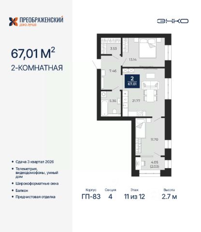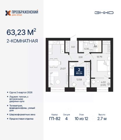 Продается 2-комн. квартира с предчистовой отделкой в ЖК "Преображенский" на 10 этаже. Общая площадь: 78 кв.м., жилая: 30.63 кв.м., площадь просторной кухни-столовой: 21.6 кв.м. Комнаты изолированные, все окна выходят на одну сторону. В квартире одна лоджия, один совмещенный и один раздельный санузел. Высота потолков 2.7 м. Дом монолитный, многоподъездный, переменной этажности, от 8 до 12 этажей. Квартира находится в 3-й секции высотой 10 этажей в корпусе ГП-82. На этаже 4 квартиры. В подъезде 1 пассажирский и 1 грузовой лифт. Окончание строительства - 3 квартал 2026 года. Оформление сделки по договору долевого участия. Квартал будет расположен в микрорайоне Славянский на пересечении улиц Мира и 70-летия Октября. Престижный район, собственный парк, вся необходимая для жизни, учёбы и работы инфраструктура — новая школа с бассейном и кванториумом, новый детский сад, поликлиника, спорткомплекс, магазины и др. Чтобы в квартирах было как можно больше свободного пространства, мы предусмотрели индивидуальные кладовые на цокольном этаже. Оставляйте коляски и сезонный спортинвентарь после прогулок здесь — удобно для вас и чисто для квартиры. В подземный паркинг можно спуститься на лифте прямо с квартирной площадки. #2WFZaS