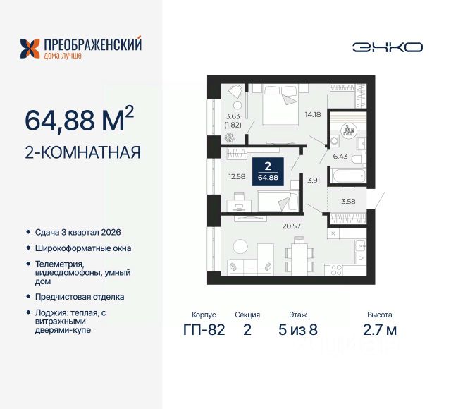 Продается 2-комн. квартира от застройщика с предчистовой отделкой в ЖК "Преображенский" на 5 этаже. Общая площадь: 78 кв.м., жилая: 30.63 кв.м., площадь просторной кухни-столовой: 21.6 кв.м. Комнаты изолированные, все окна выходят на одну сторону. В квартире одна лоджия, один совмещенный и один раздельный санузел. Высота потолков 2.7 м. Дом монолитный, многоподъездный, переменной этажности, от 8 до 12 этажей. Квартира находится в 3-й секции высотой 10 этажей в корпусе ГП-82. На этаже 4 квартиры. В подъезде 1 пассажирский и 1 грузовой лифт. Окончание строительства - 3 квартал 2026 года. Оформление сделки по договору долевого участия. Квартал будет расположен в микрорайоне Славянский на пересечении улиц Мира и 70-летия Октября. Престижный район, собственный парк, вся необходимая для жизни, учёбы и работы инфраструктура — новая школа с бассейном и кванториумом, новый детский сад, поликлиника, спорткомплекс, магазины и др. Чтобы в квартирах было как можно больше свободного пространства, мы предусмотрели индивидуальные кладовые на цокольном этаже. Оставляйте коляски и сезонный спортинвентарь после прогулок здесь — удобно для вас и чисто для квартиры. В подземный паркинг можно спуститься на лифте прямо с квартирной площадки. #zmdD2g Купить 2-комнатную квартиру на 5 этаже в Ямало-Ненецком АО.