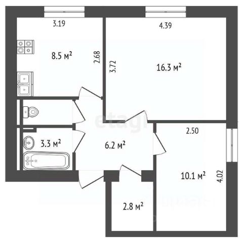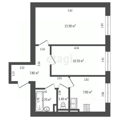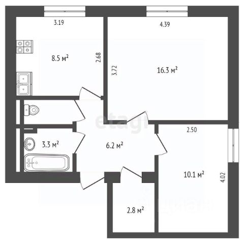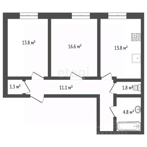 • ✅ Объект наибольшей площади: 63,1 м²