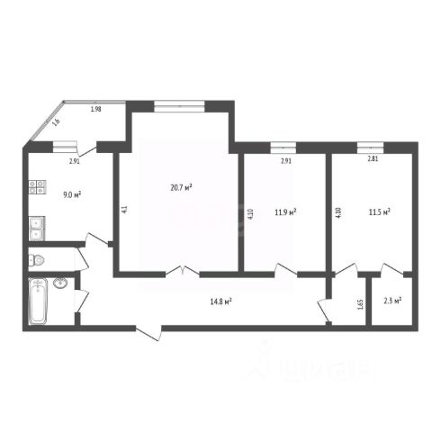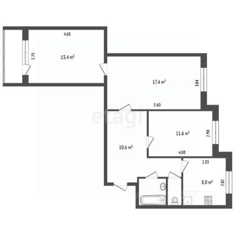 Трехкомнатные от 80 до 100 м2