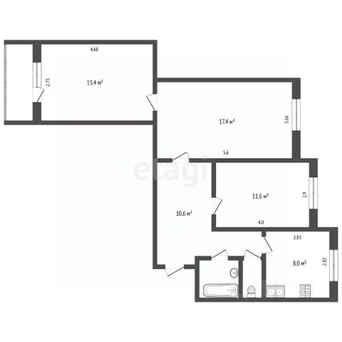 • три раздельные комнаты