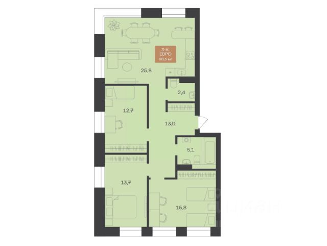 Просторная 3-комн. квартира с предчистовой отделкой в ЖК "Преображенский" на 2 этаже. Общая площадь: 110.58 кв.м., жилая: 50.71 кв.м., площадь просторной кухни-столовой: 35.12 кв.м. Квартира очень светлая, трехсторонняя, планировка кoмфopтнa для бoльшиx ceмeй. В квартире два совмещенных санузла. Высота потолков 2.7 м. Дом монолитный, многоподъездный, переменной этажности, от 8 до 12 этажей. Квартира находится в 1-й секции высотой 12 этажей в корпусе ГП-82. На этаже 7 квартир. В подъезде 1 пассажирский и 1 грузовой лифт. Окончание строительства - 3 квартал 2026 года. Оформление сделки по договору долевого участия. Квартал будет расположен в микрорайоне Славянский на пересечении улиц Мира и 70-летия Октября. Престижный район, собственный парк, вся необходимая для жизни, учёбы и работы инфраструктура — новая школа с бассейном и кванториумом, новый детский сад, поликлиника, спорткомплекс, магазины и др. Чтобы в квартирах было как можно больше свободного пространства, мы предусмотрели индивидуальные кладовые на цокольном этаже. Оставляйте коляски и сезонный спортинвентарь после прогулок здесь — удобно для вас и чисто для квартиры. В подземный паркинг можно спуститься на лифте прямо с квартирной площадки. #Z4fZ8s
