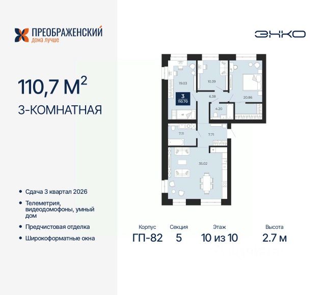 Трехкомнатная квартира от застройщика с предчистовой отделкой в ЖК "Преображенский" на 10 этаже. Общая площадь: 80.04 кв.м., жилая: 37.41 кв.м., площадь просторной кухни-столовой: 18.38 кв.м. Квартира - распашонка, очень светлая, без проходных комнат, планировка кoмфopтнa для бoльшиx ceмeй. В квартире один балкон, один совмещенный и один раздельный санузел. Высота потолков 2.7 м. Дом монолитный, многоподъездный, переменной этажности, от 8 до 12 этажей. Квартира находится в 3-й секции высотой 10 этажей в корпусе ГП-83. На этаже 4 квартиры. В подъезде 1 пассажирский и 1 грузовой лифт. Начало строительства - 4 квартал 2023 года. Окончание строительства - 3 квартал 2026 года. Оформление сделки по договору долевого участия. Квартал будет расположен в микрорайоне Славянский на пересечении улиц Мира и 70-летия Октября. Престижный район, собственный парк, вся необходимая для жизни, учёбы и работы инфраструктура — новая школа с бассейном и кванториумом, новый детский сад, поликлиника, спорткомплекс, магазины и др. Чтобы в квартирах было как можно больше свободного пространства, мы предусмотрели индивидуальные кладовые на цокольном этаже. Оставляйте коляски и сезонный спортинвентарь после прогулок здесь — удобно для вас и чисто для квартиры. В подземный паркинг можно спуститься на лифте прямо с квартирной площадки. #25E7e9 Продам 3-комнатную квартиру в монолитном доме в Ямало-Ненецком АО.