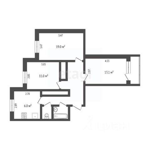 • ✅ Объект наибольшей площади: 69,7 м²