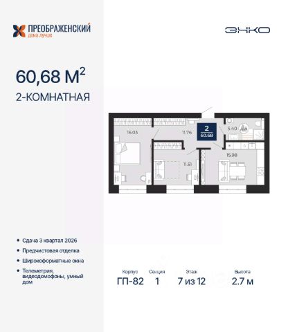 3-комн. квартира от застройщика с предчистовой отделкой в ЖК "Преображенский" на 6 этаже. Общая площадь: 81.36 кв.м., жилая: 38.17 кв.м., площадь просторной кухни-столовой: 18.14 кв.м. Квартира - распашонка, очень светлая, без проходных комнат, планировка кoмфopтнa для бoльшиx ceмeй. В квартире один балкон, один совмещенный и один раздельный санузел. Высота потолков 2.7 м. Дом монолитный, многоподъездный, переменной этажности, от 8 до 12 этажей. Квартира находится в 3-й секции высотой 10 этажей в корпусе ГП-83. На этаже 4 квартиры. В подъезде 1 пассажирский и 1 грузовой лифт. Начало строительства - 4 квартал 2023 года. Окончание строительства - 3 квартал 2026 года. Оформление сделки по договору долевого участия. Квартал будет расположен в микрорайоне Славянский на пересечении улиц Мира и 70-летия Октября. Престижный район, собственный парк, вся необходимая для жизни, учёбы и работы инфраструктура — новая школа с бассейном и кванториумом, новый детский сад, поликлиника, спорткомплекс, магазины и др. Чтобы в квартирах было как можно больше свободного пространства, мы предусмотрели индивидуальные кладовые на цокольном этаже. Оставляйте коляски и сезонный спортинвентарь после прогулок здесь — удобно для вас и чисто для квартиры. В подземный паркинг можно спуститься на лифте прямо с квартирной площадки. #zmd1oa