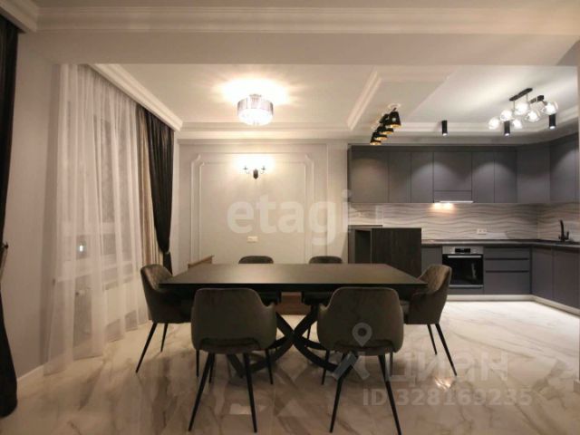 На кухне остаётся кухонный гарнитур и встроенная техника: духовой шкаф, варочная поверхность, микроволновая печь, посудомоечная машина, а также угловой диван.