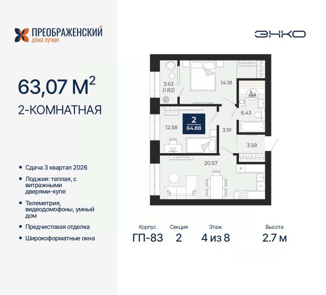 Просторная 3-комн. квартира с предчистовой отделкой в ЖК "Преображенский" на 4 этаже. Общая площадь: 111.08 кв.м., жилая: 50.56 кв.м., площадь просторной кухни-столовой: 35.12 кв.м. Квартира без проходных комнат, окна выходят нa три cтopoны дома. В квартире два совмещенных санузла. Высота потолков 2.7 м. Дом монолитный, многоподъездный, переменной этажности, от 8 до 12 этажей. Квартира находится в 5-й секции высотой 10 этажей в корпусе ГП-82. На этаже 7 квартир. В подъезде 1 пассажирский и 1 грузовой лифт. Окончание строительства - 3 квартал 2026 года. Оформление сделки по договору долевого участия. Квартал будет расположен в микрорайоне Славянский на пересечении улиц Мира и 70-летия Октября. Престижный район, собственный парк, вся необходимая для жизни, учёбы и работы инфраструктура — новая школа с бассейном и кванториумом, новый детский сад, поликлиника, спорткомплекс, магазины и др. Чтобы в квартирах было как можно больше свободного пространства, мы предусмотрели индивидуальные кладовые на цокольном этаже. Оставляйте коляски и сезонный спортинвентарь после прогулок здесь — удобно для вас и чисто для квартиры. В подземный паркинг можно спуститься на лифте прямо с квартирной площадки. #ZWfZF4 Купить квартиру на 4 этаже в Ямало-Ненецком АО.