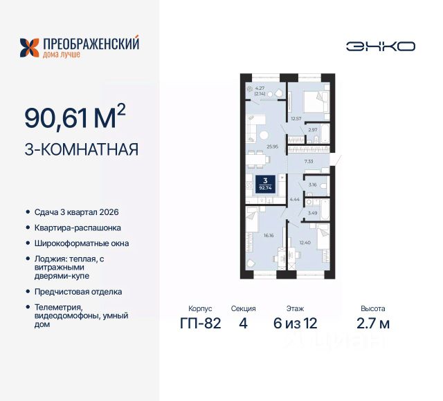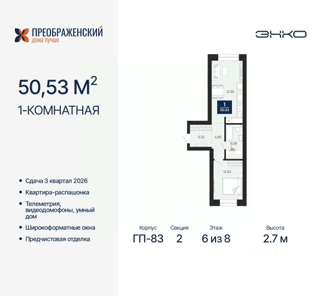 Продается 1-комн. квартира с предчистовой отделкой в ЖК "Преображенский" на 6 этаже. Общая площадь: 38.73 кв.м., жилая: 11.34 кв.м., площадь просторной кухни-столовой: 14.6 кв.м. Все окна выходят на одну сторону. В квартире одна лоджия, один совмещенный санузел. Высота потолков 2.7 м. Дом монолитный, многоподъездный, переменной этажности, от 8 до 12 этажей. Квартира находится в 4-й секции высотой 12 этажей в корпусе ГП-83. На этаже 6 квартир. В подъезде 1 пассажирский и 1 грузовой лифт. Начало строительства - 4 квартал 2023 года. Окончание строительства - 3 квартал 2026 года. Оформление сделки по договору долевого участия. Квартал будет расположен в микрорайоне Славянский на пересечении улиц Мира и 70-летия Октября. Престижный район, собственный парк, вся необходимая для жизни, учёбы и работы инфраструктура — новая школа с бассейном и кванториумом, новый детский сад, поликлиника, спорткомплекс, магазины и др. Чтобы в квартирах было как можно больше свободного пространства, мы предусмотрели индивидуальные кладовые на цокольном этаже. Оставляйте коляски и сезонный спортинвентарь после прогулок здесь — удобно для вас и чисто для квартиры. В подземный паркинг можно спуститься на лифте прямо с квартирной площадки. #2SE7FB