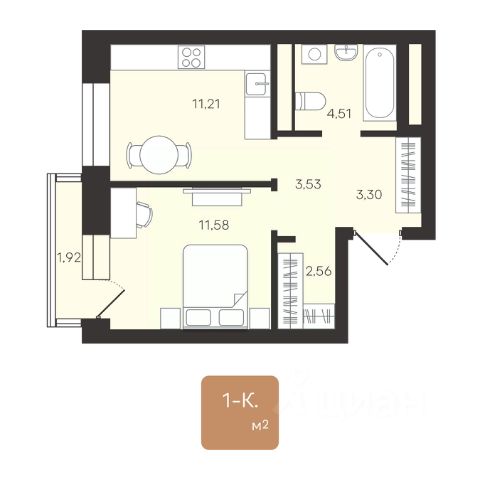 Однокомнатные от 38 до 46 м2