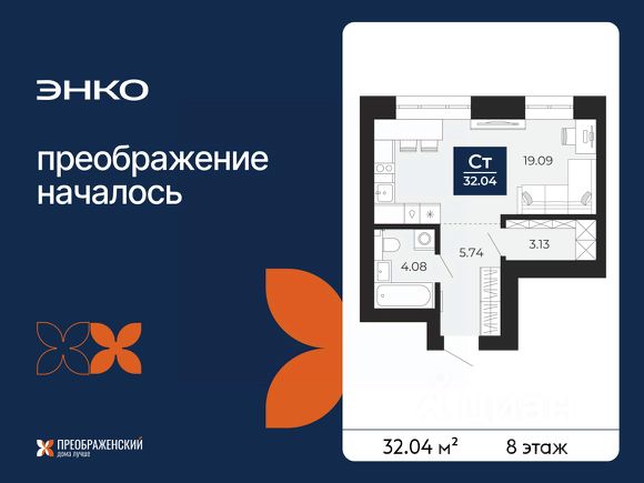 Скидка 15% на ограниченный пул квартир. Торопитесь забронировать по этой цене, предложение ограничено! Стоимость квартиры указана со скидкой. Звоните, мы вам все подробно расскажем. Просторная 1-комн. квартира-студия с предчистовой отделкой в ЖК "Преображенский" на 8 этаже. Общая площадь: 32.04 кв.м., площадь гостиной 19.09 кв.м., из которых 5 кв.м. выделено под кухонную зону. Все окна выходят на одну сторону. В квартире один совмещенный санузел. Высота потолков 2.7 м. Дом монолитный, многоподъездный, переменной этажности, от 8 до 12 этажей. Квартира находится в 1-й секции высотой 12 этажей в корпусе ГП-82. На этаже 7 квартир. В подъезде 1 пассажирский и 1 грузовой лифт. Окончание строительства - 3 квартал 2026 года. Оформление сделки по договору долевого участия. Квартал будет расположен в микрорайоне Славянский на пересечении улиц Мира и 70-летия Октября. Престижный район, собственный парк, вся необходимая для жизни, учёбы и работы инфраструктура — новая школа с бассейном и кванториумом, новый детский сад, поликлиника, спорткомплекс, магазины и др. Чтобы в квартирах было как можно больше свободного пространства, мы предусмотрели индивидуальные кладовые на цокольном этаже. Оставляйте коляски и сезонный спортинвентарь после прогулок здесь — удобно для вас и чисто для квартиры. В подземный паркинг можно спуститься на лифте прямо с квартирной площадки. #z4f2m7