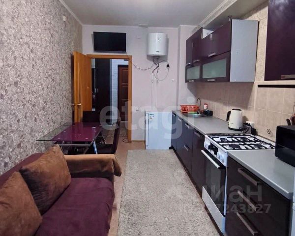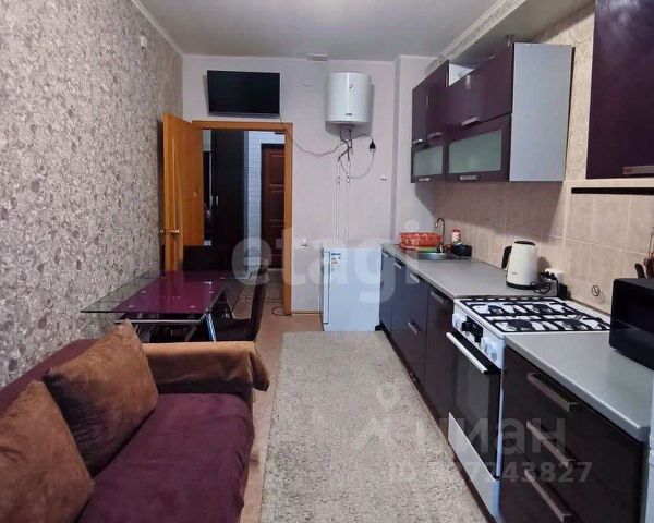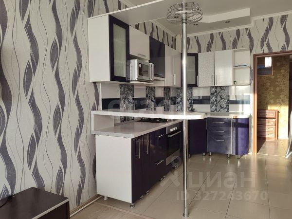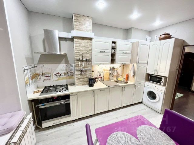На кухне остаётся кухонный гарнитур и встроенная техника: духовой шкаф, варочная поверхность, микроволновая печь, посудомоечная машина, а также угловой диван.