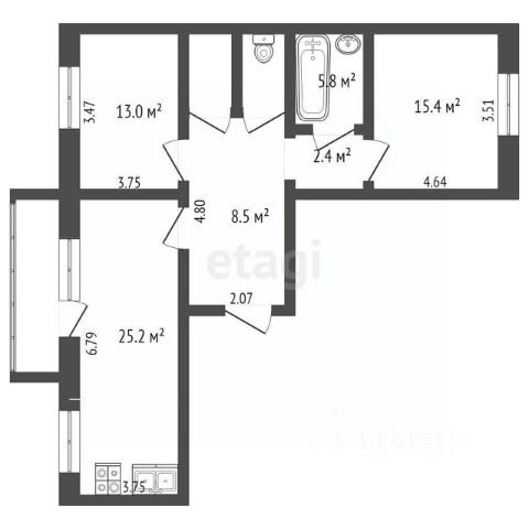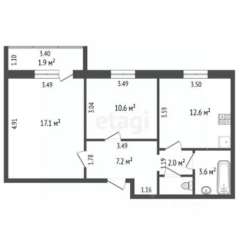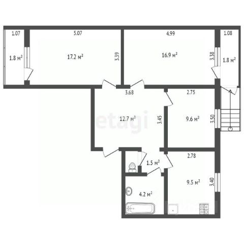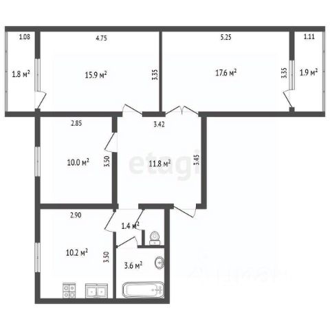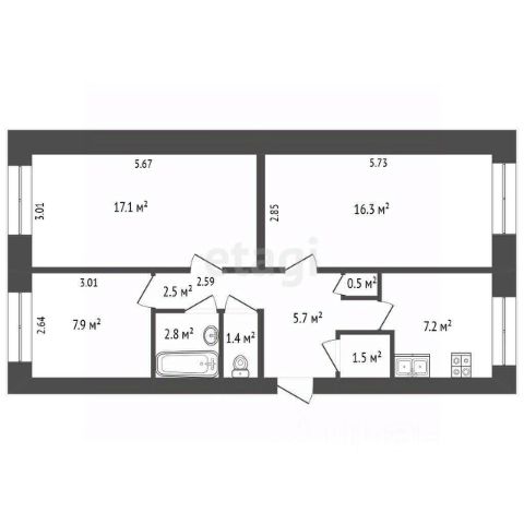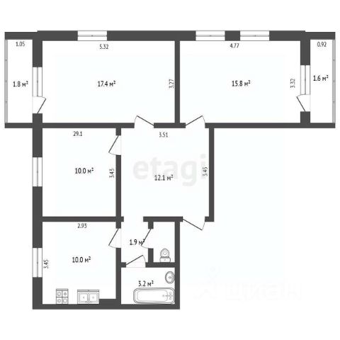 • три раздельные комнаты