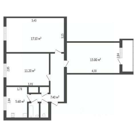 Просторная кухня-гостиная, спальня, вторая комната (можно использовать как кабинет или детскую), два санузла, ванная и душевая комнаты.