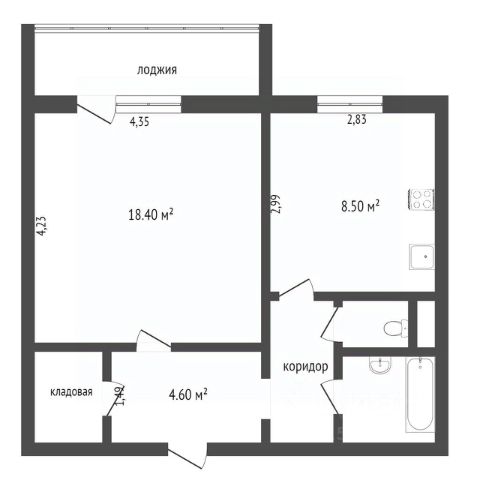2,1 кв.м ванная;