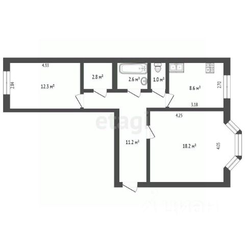 2,1 кв.м ванная;