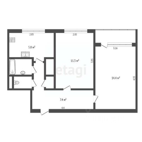 5,8 кв.м. кухня;