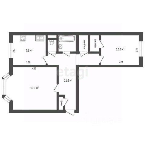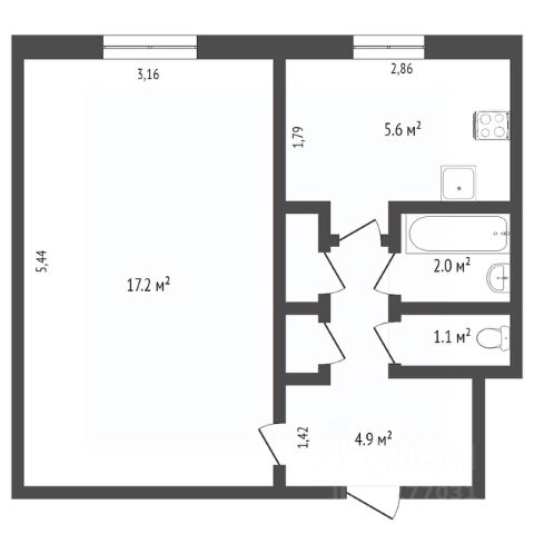 17,2 кв.м комната;