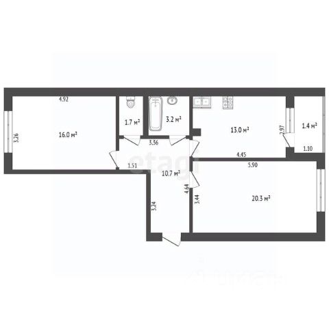 • три раздельные комнаты