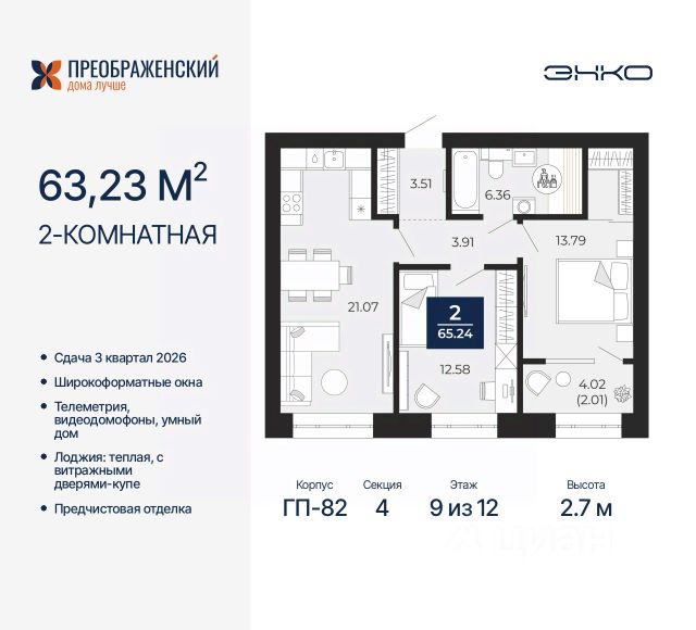 Трехкомнатная квартира с предчистовой отделкой в ЖК "Преображенский" на 3 этаже. Общая площадь: 91.92 кв.м., жилая: 41.82 кв.м., площадь просторной кухни-столовой: 26.03 кв.м. Квартира - распашонка, без проходных комнат, окна выходят на paзные стороны дома. В квартире одна лоджия, один совмещенный и один раздельный санузел. Высота потолков 2.7 м. Дом монолитный, многоподъездный, переменной этажности, от 8 до 12 этажей. Квартира находится во 2-й секции высотой 8 этажей в корпусе ГП-83. На этаже 6 квартир. В подъезде 1 грузовой лифт. Начало строительства - 4 квартал 2023 года. Окончание строительства - 3 квартал 2026 года. Оформление сделки по договору долевого участия. Квартал будет расположен в микрорайоне Славянский на пересечении улиц Мира и 70-летия Октября. Престижный район, собственный парк, вся необходимая для жизни, учёбы и работы инфраструктура — новая школа с бассейном и кванториумом, новый детский сад, поликлиника, спорткомплекс, магазины и др. Чтобы в квартирах было как можно больше свободного пространства, мы предусмотрели индивидуальные кладовые на цокольном этаже. Оставляйте коляски и сезонный спортинвентарь после прогулок здесь — удобно для вас и чисто для квартиры. В подземный паркинг можно спуститься на лифте прямо с квартирной площадки. #Z5E7eW Квартира в Ямало-Ненецком АО.
