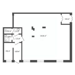 Помещение свободного назначения на 1 этаже, общая площадь 119.53 кв.м. Стоимость помещения 22,341,200 руб., цена за кв.м 186,908 руб.