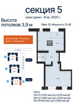Потолки: 3,9м. высокие — комфорт для экспозиции и оборудования.