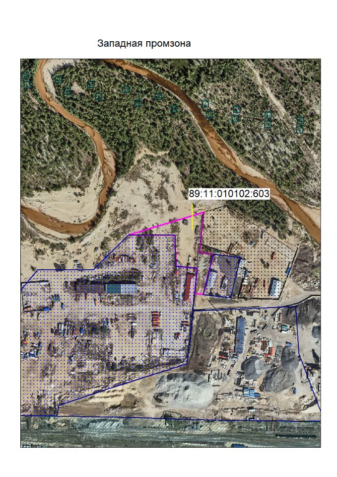 Земельный участок с кадастровым номером 89:11:010102:603. Площадь: 5 033 кв.м. Местонахождение: Ямало-Ненецкий автономный округ, городской округ город Новый Уренгой, город Новый Уренгой, Западная промзона.