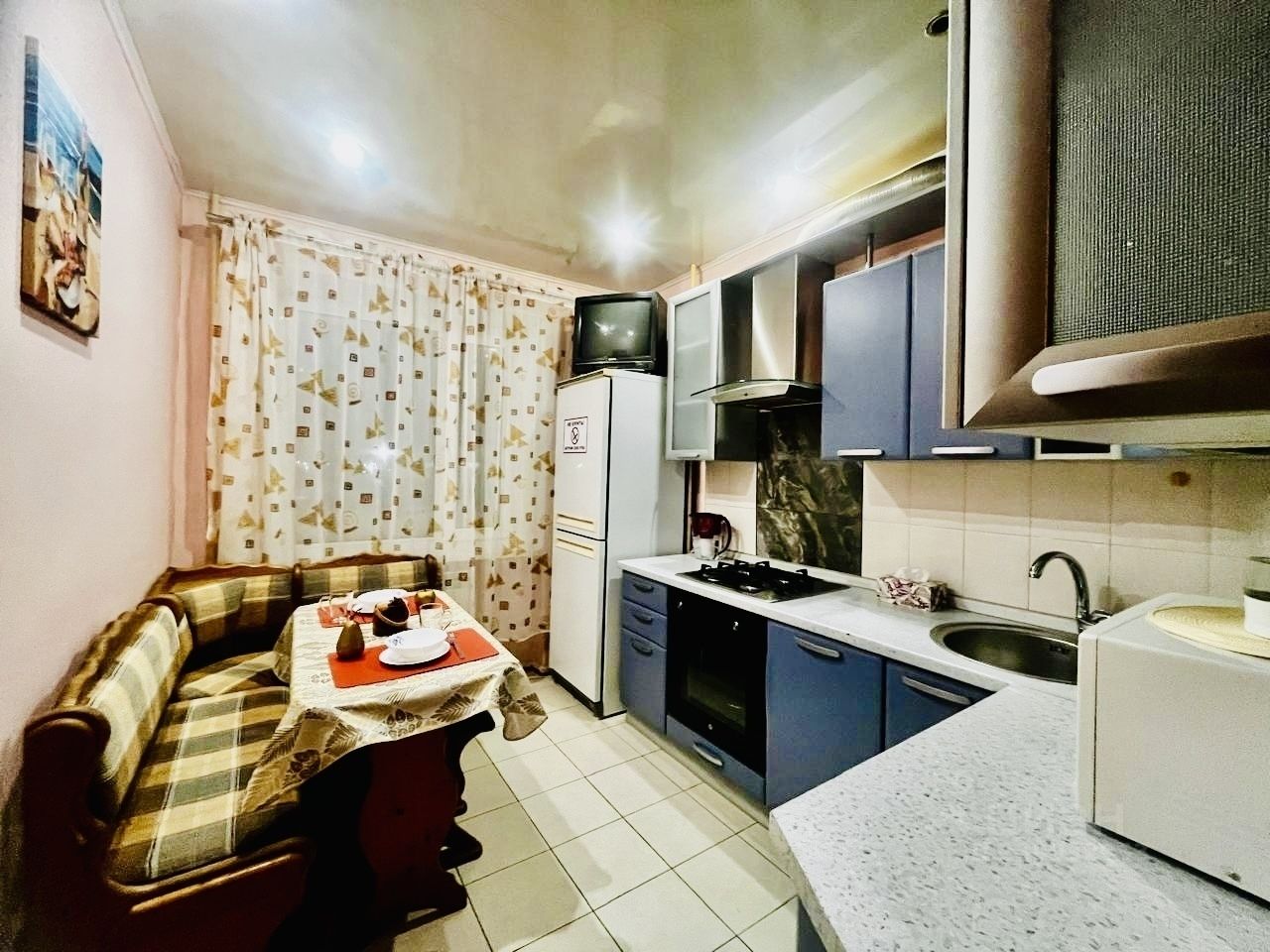 - вся необходимая техника: тв, стиральная машина, утюг, холодильник, кухонная электрическая плита, микроволновка;