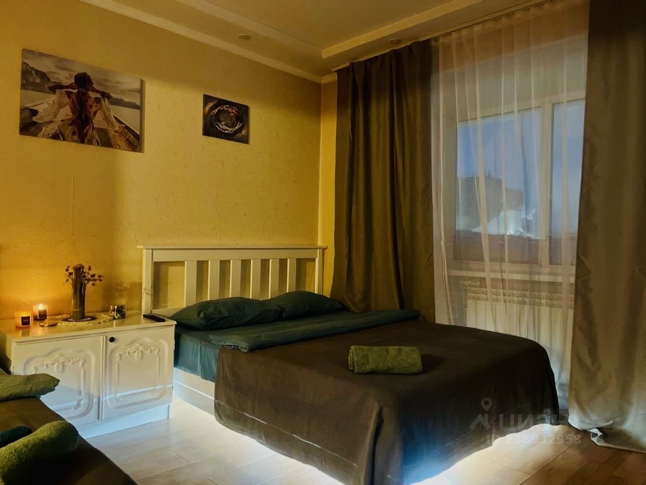 Возможность размещения до 9ти гостей (три 2-спальные кровати + 3 дивана).