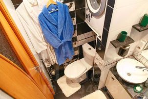 — В санузле установлена новая сантехника и душевая кабина. К услугам гостей стиральная машина-автомат и все необходимые для личного ухода принадлежности.