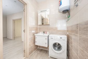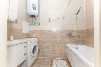 Санузел раздельный. В ванной комнате находится ванна, раковина, стиральная машина, порошок и кондиционер для стирки белья, водонагреватель на 80 л, современный фен-стайлер для быстрой сушки волос.