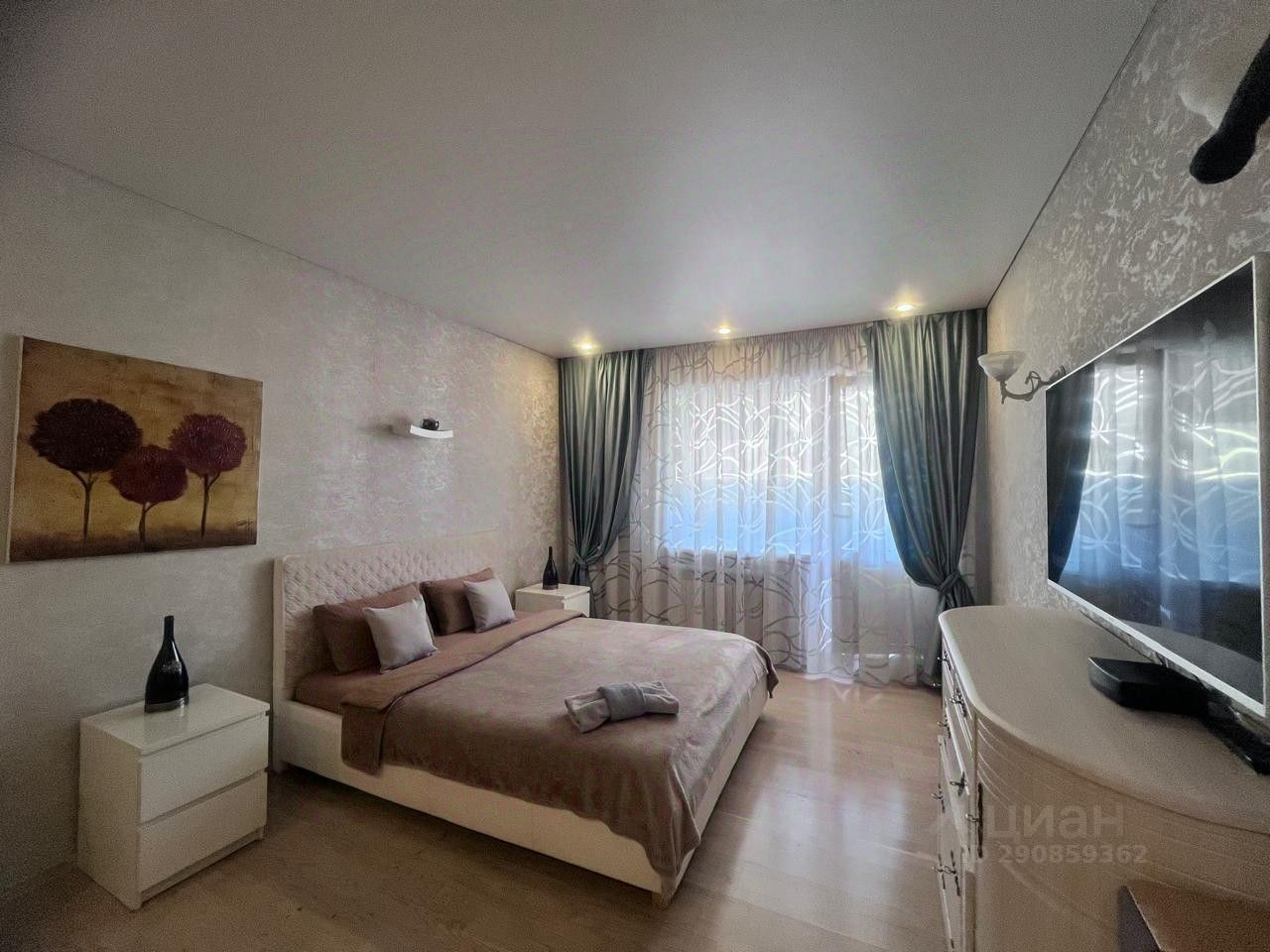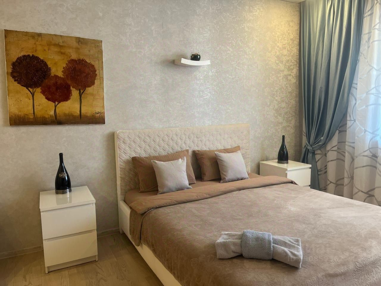 Возможность размещения до 5ти гостей (2-спальная кровать, во второй комнате 2-спальная кровать + кресло- кровать).