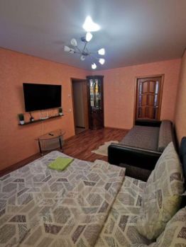 Трехкомнатные апартаменты подойдут для размещения до 5 человек. Спальные места: двуспальные кровати, раскладной диван. Для пользования доступны: WI-FI, плазменный телевизор с кабельным ТВ, фен, места для хранения вещей, утюг - по запросу. На кухне: плита, холодильник, свч-печь, чайник, посуда и кухонные принадлежности. Раздельный санузел. Постельное белье и полотенца предоставляются. Апартаменты расположены на 3-м этаже 9-ти этажного дома.