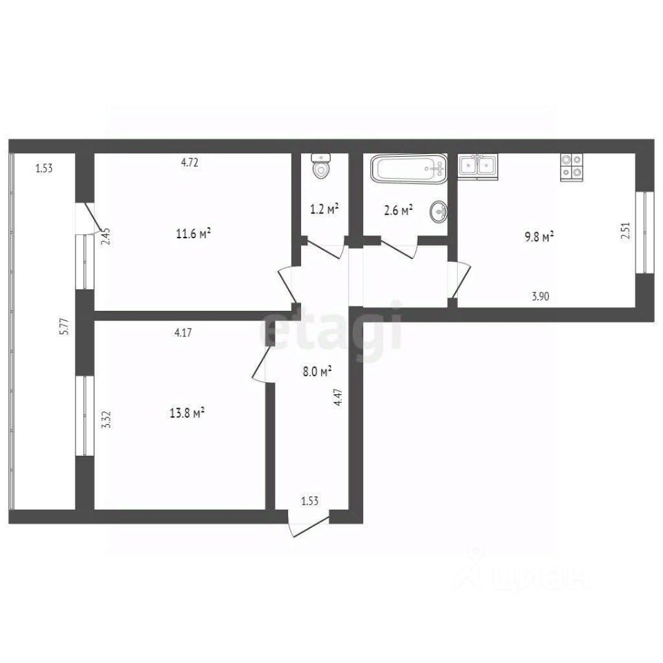 - Удобная планировка: просторная гостиная для отдыха и приема гостей, уютная спальня для полноценного сна и восстановления сил, функциональная кухня для кулинарных экспериментов и приятный интерьер ванной комнаты.