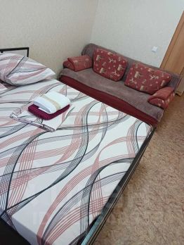 Квартира однокомнатная, светлая, чистая, теплая. С удобной широкой кроватью, дополнительное спальное место: диван раскладывается на 2 спальных места. Полностью оборудованная кухня, с бытовой техникой и посудой, санузел совмещен.