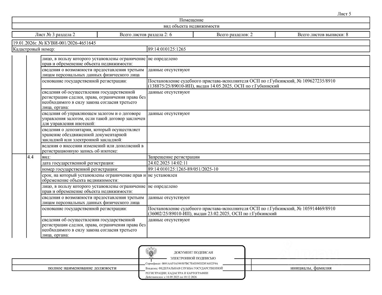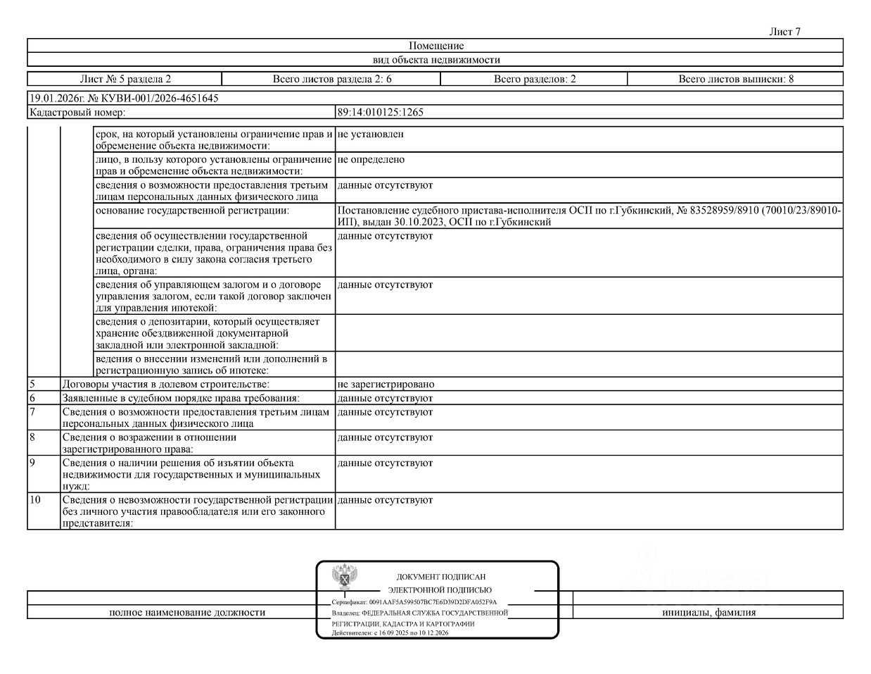 Должник: Хакимов Д.В., собственник: Хакимов Д.В. Лот: Нежилое помещение (гараж), площадь 22,4 кв.м., кадастровый номер: 89:14:010125:1265, г. Губкинский, гаражный массив 13, блок 4/Х, гараж 85, н/ц: 444000 р, з-к: 66600 р, код: 0001, рег. 25-178;