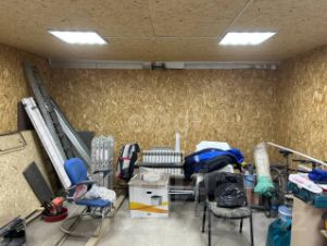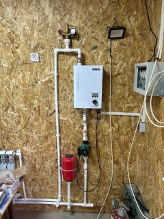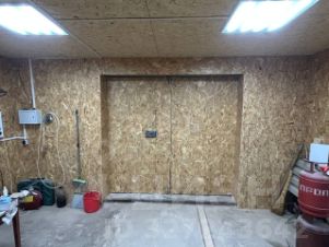 Гараж утеплен и обшит ОСБ, что позволяет поддерживать комфортную температуру внутри в любое время года. Установленный электрический котел мощностью 4,5 кВт и три радиатора с 12 секциями обеспечат тепло даже в самые холодные зимние дни.
