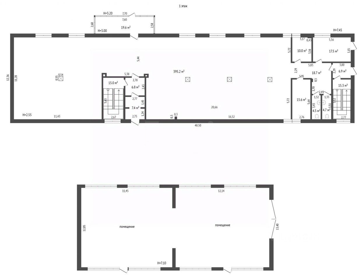 На первом этаже большой магазин, на втором этаже офисные помещения.